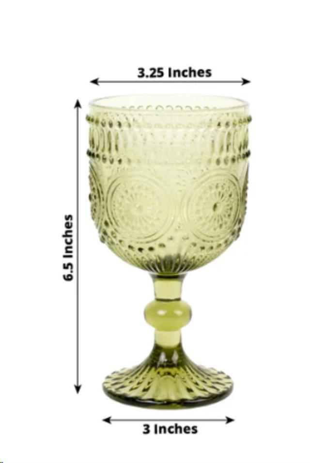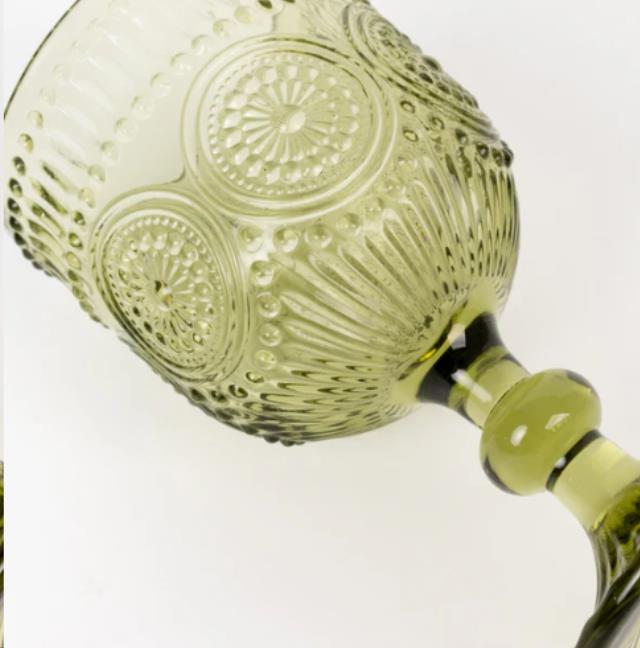 GLASS, EMB GOBLET, SAGE 12OZ-E